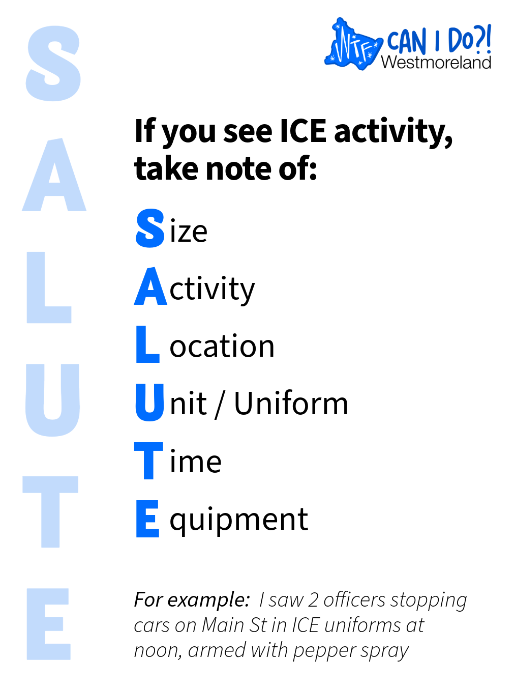 Reach out to local law enforcement, and let them know where you stand on cooperation with ICE. WTF Can I Do Westmoreland will be writing letters to each of these departments. We will then be recruiting citizens in these jurisdictions to obtain petition signatures and set up meetings the departments to let them know that their community does not support any agreements with ICE.